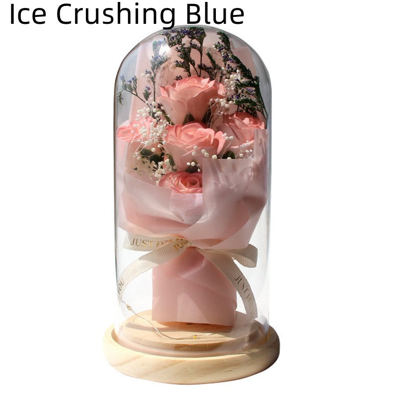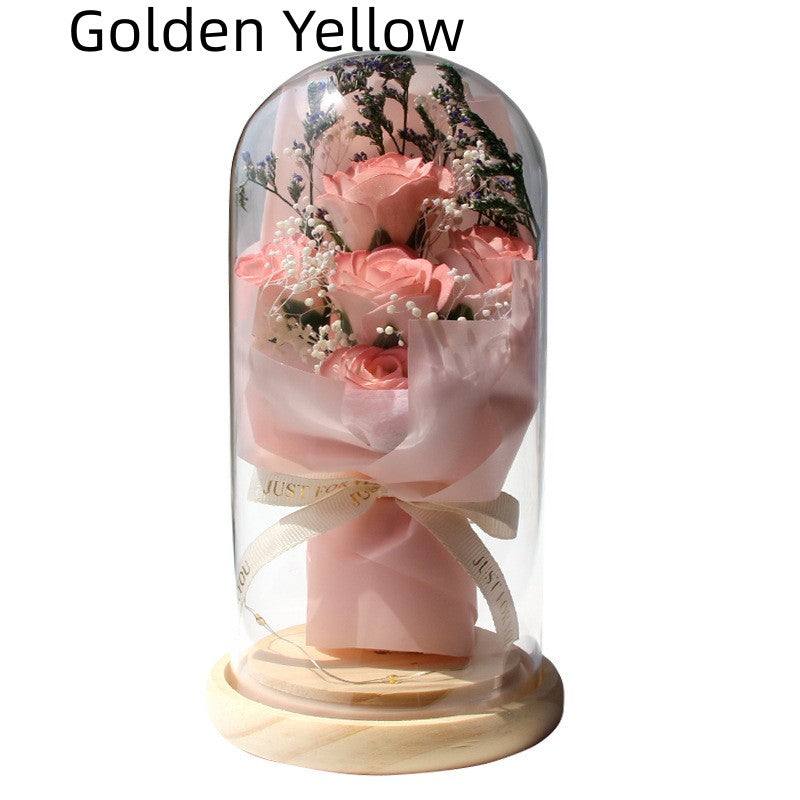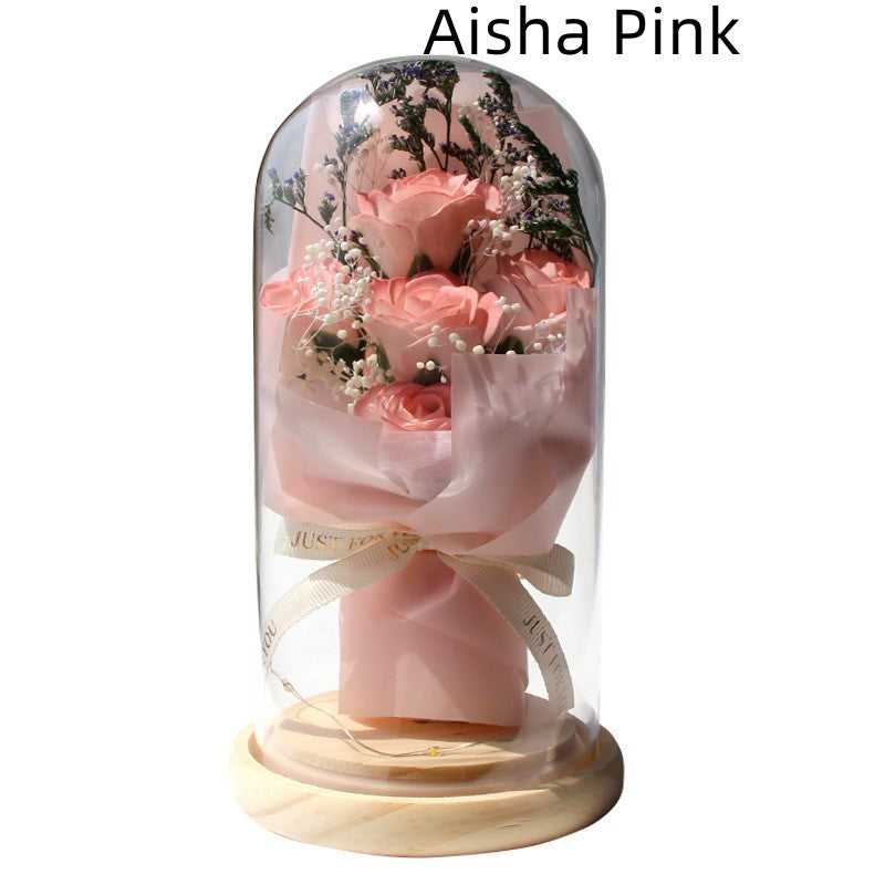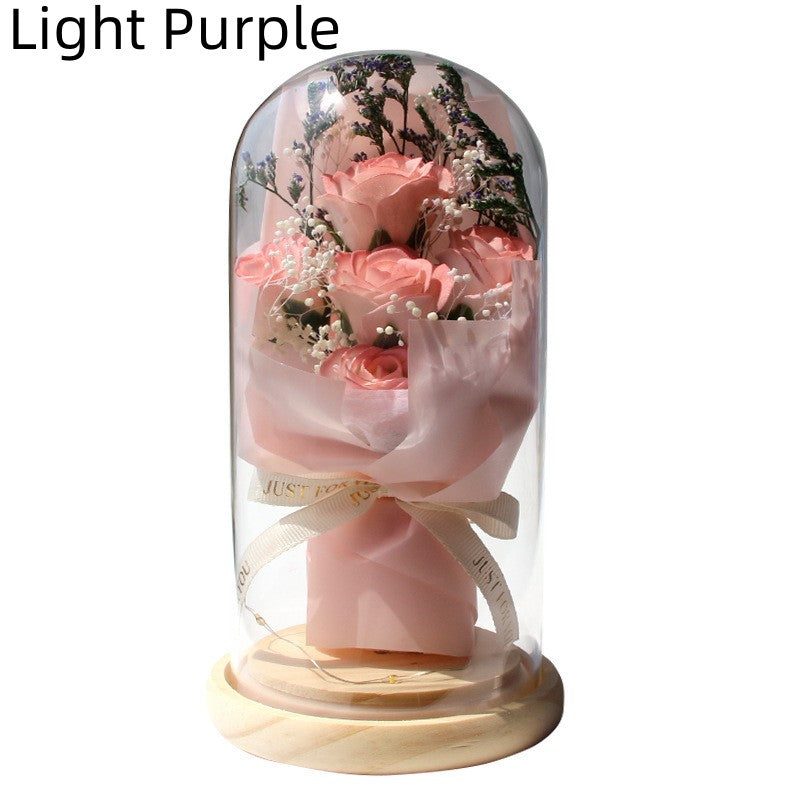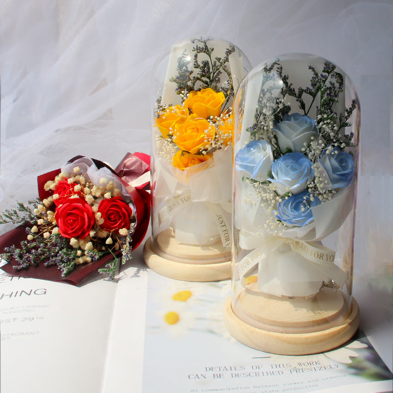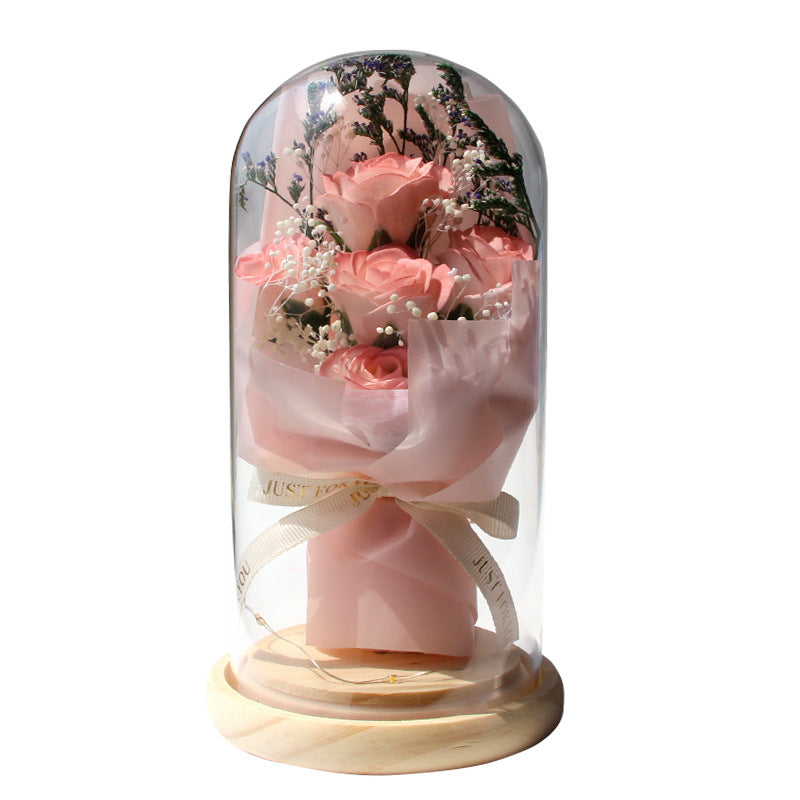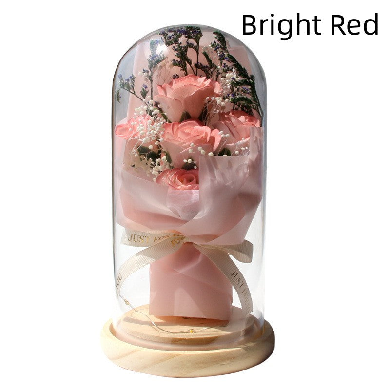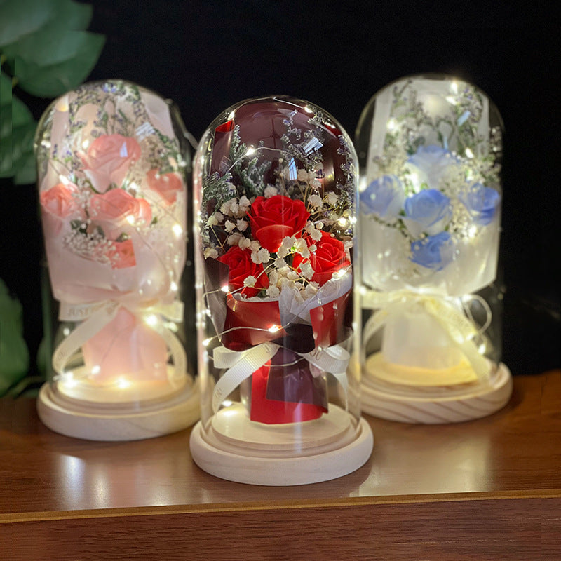 Artificial Rose Dried Flowers Gypsophila Babysbreath Bouquet Glass Cover Ornaments LED Small Night Lamp Valentine's Day Gift