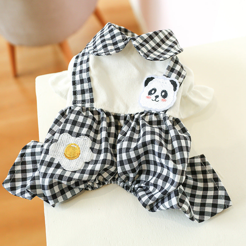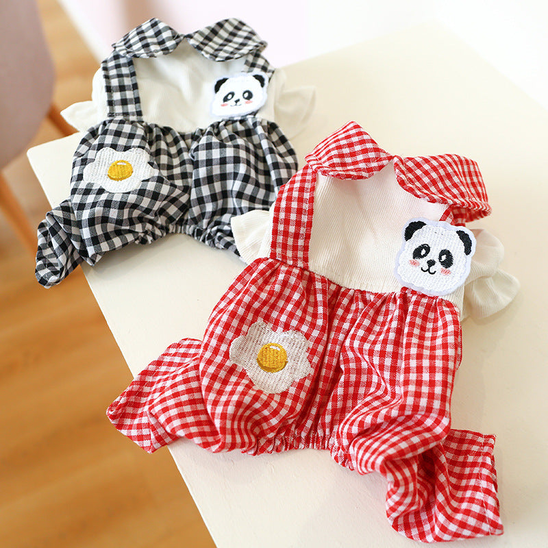 Autumn And Winter Teddy Bichon Small And Medium-sized Dogs Four-legged Pet Clothing Plaid Poached Egg Panda Overalls