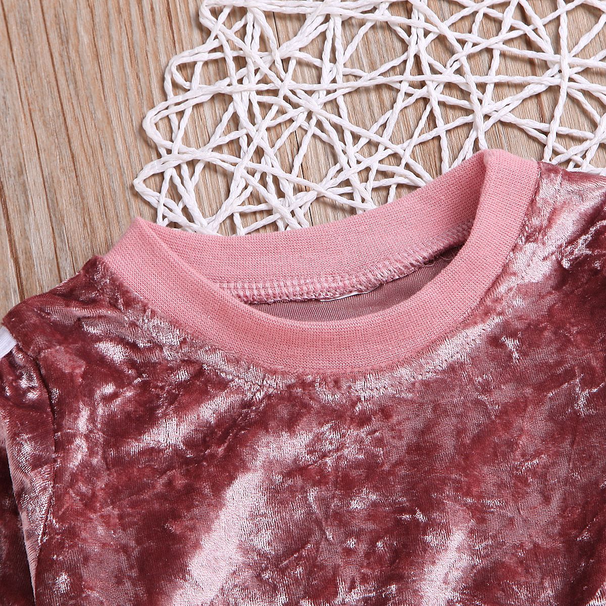 Breathable Clothes Set Cute Fashion O-Neck Long Sleeve Gold Velvet Sweatshirt Trousers Soft Outfits Baby Girls Tracksuit Sets