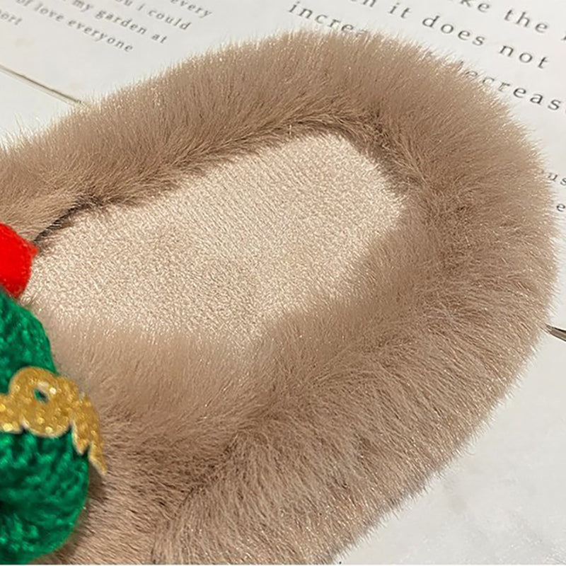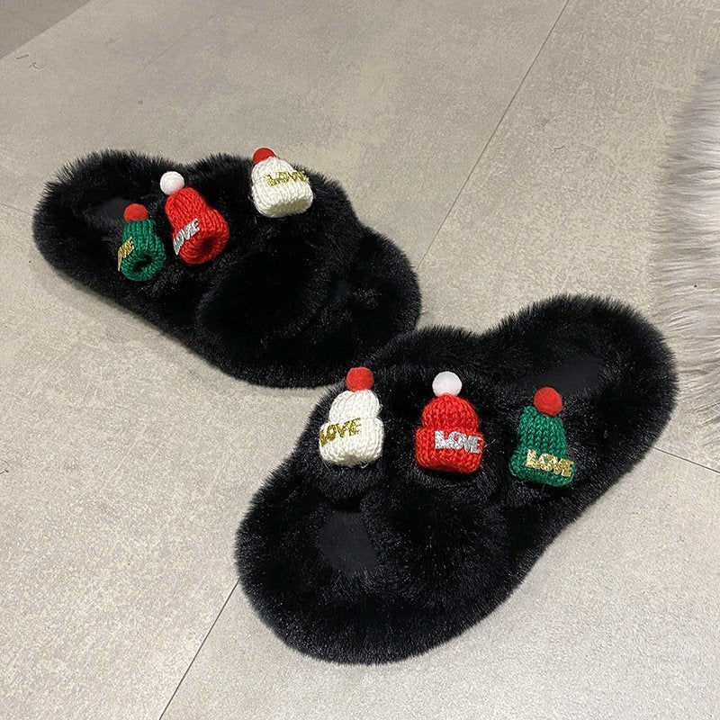 Christmas Hat Decoration Super Hairy Women's Slippers