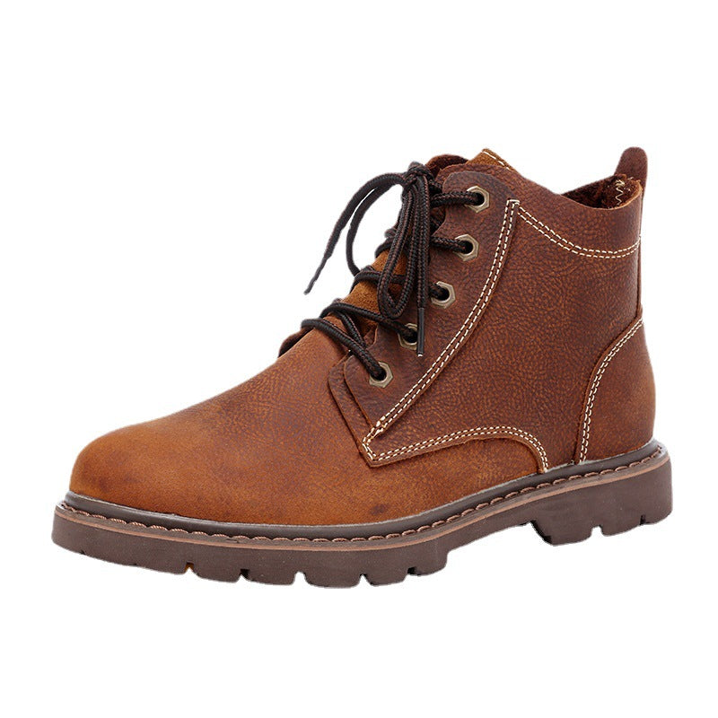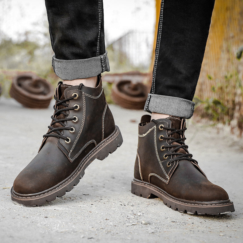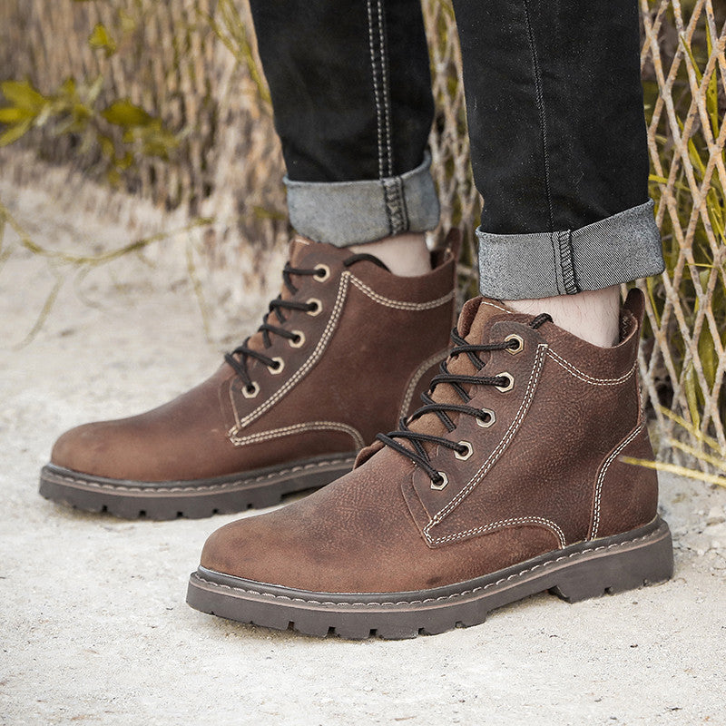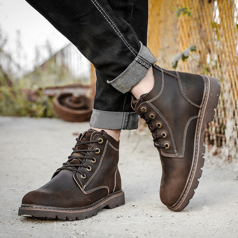 Vintage Men's Leather Boots Worke High-top Shoes